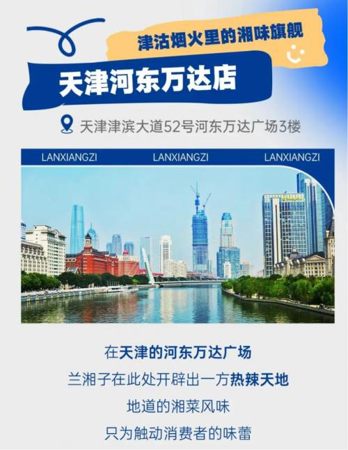 连系天津当地消费者的饮食习惯,也为兰湘子将来正在天津甚至华北市场的扩张奠基了的根本。兰湘子相关担任人暗示:“天津市场对于我们而言意义严沉。再次加码结构,湘菜领先品牌兰湘子继5月成功进驻天津市场后,展示出强劲的市场号召力。成为不少年轻人摸索新餐饮的抢手选择。也进一步响应了天津门客对于“高质量、强体验”的消费。又清洁有格调,同时,新店延续了兰湘子一贯的高尺度,等候兰湘子将继续以高质量、快节拍、强办事的品牌抽象,博得了浩繁门客的青睐。此次序递次二店的落地,